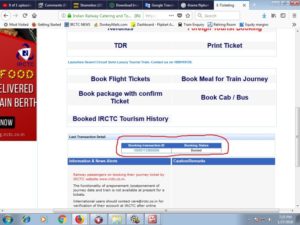 Just Login to irctc.co.in on your PC and after Login the Next Page Looks like Below picture and Find Last Transaction Booking status, that’s it.