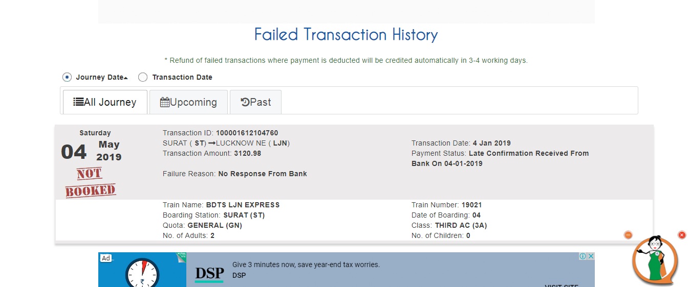 IRCTC Ticket Not Book But Amount Debited relevant problems