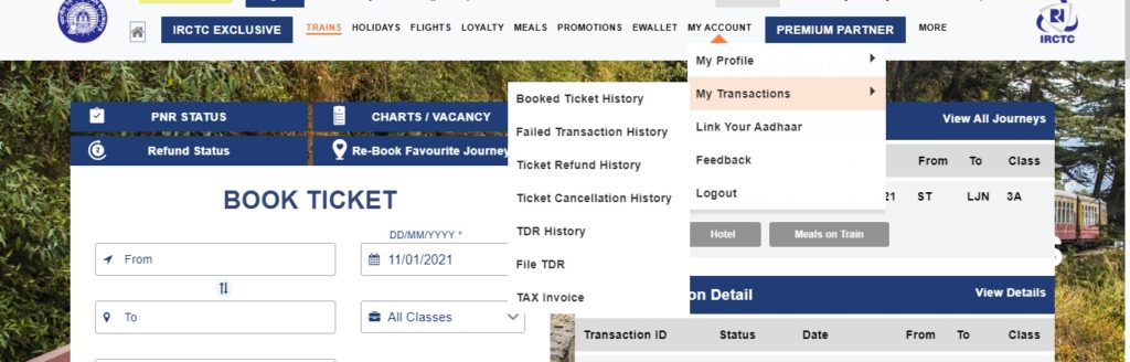 How to Check your Cancelled or Failed E-Ticket Refund Process/Status from IRCTC website?